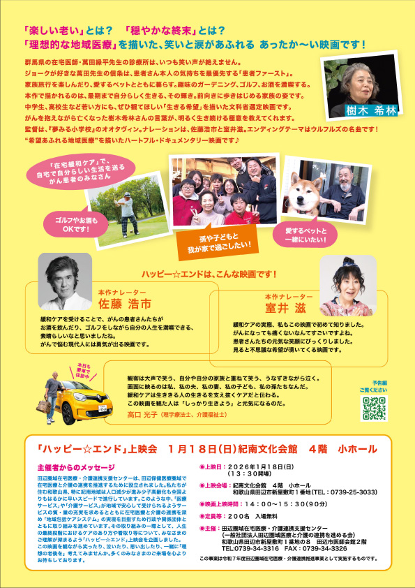 来る令和8年1月18日(日)に令和7年度在宅医療・介護連携推進事業「ハッピー☆エンド」上映会を開催します。